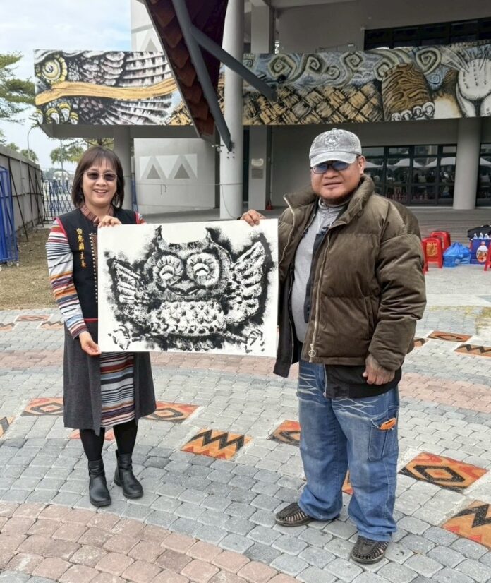 為推廣原住民族文化並深化公共藝術與市民之間的連結,臺南市政府原住民族事務委員會於27日安平地區「Tabe札哈木樂原」舉辦公共藝術作品《火我帶來囉!》民眾參與活動,臺南市政府原民會主委白惠蘭 Salau Kaljimuran與現場民眾一同彩繪;本次活動由創作者藝術家杜寒菘帶領民眾使用油漆滾輪進行貓頭鷹主題繪製,邀請親子家庭與社區居民在冬日暖陽中,共同參與藝術創作,拉近公共藝術與市民之間的距離,讓文化不只是被觀看,而是能被共同創作與感受其蘊含的生命力與自然觀。