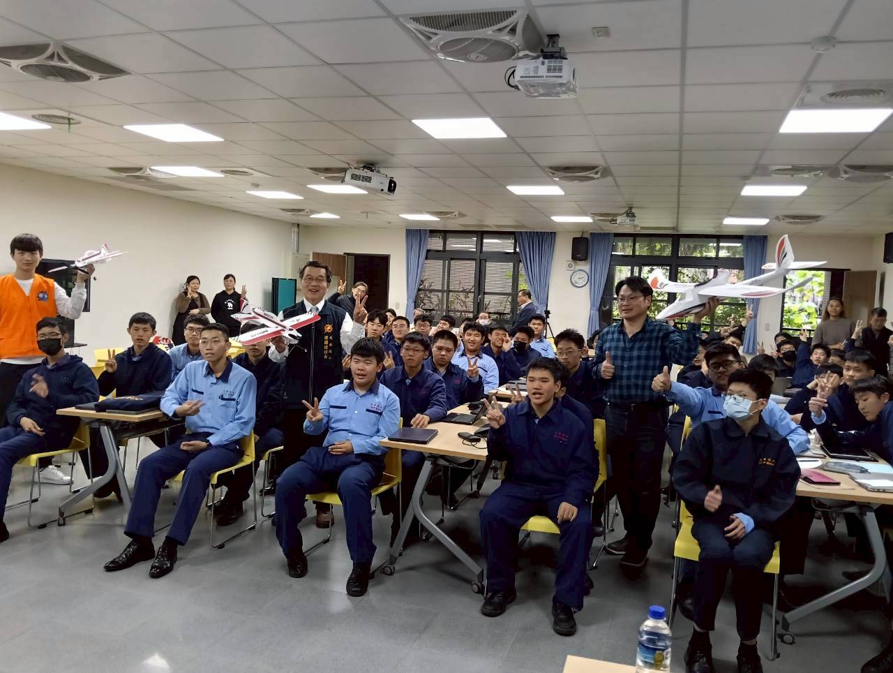 光華高工12月27日邀請素有「國軍發明王」、「空軍愛迪生」美譽的國立屏東科技大學智慧機電學士學位學程主任徐子圭教授,到學校進行為期6小時的「飛行原理與模擬器飛行」專題講座與實作體驗,啟發高工學子的航太夢想。