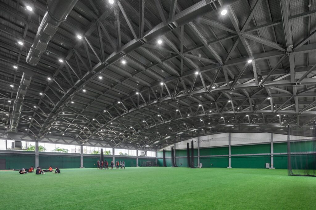 在排水設計方面,球場地下佈設魚骨狀透水管系統,並搭配高孔隙率之清碎石與砂層,有效提升排水效率。該系統於多雨期間舉辦U15亞洲青少棒錦標賽時獲得實證,強降雨過後即能迅速恢復比賽,充分展現設計成效。