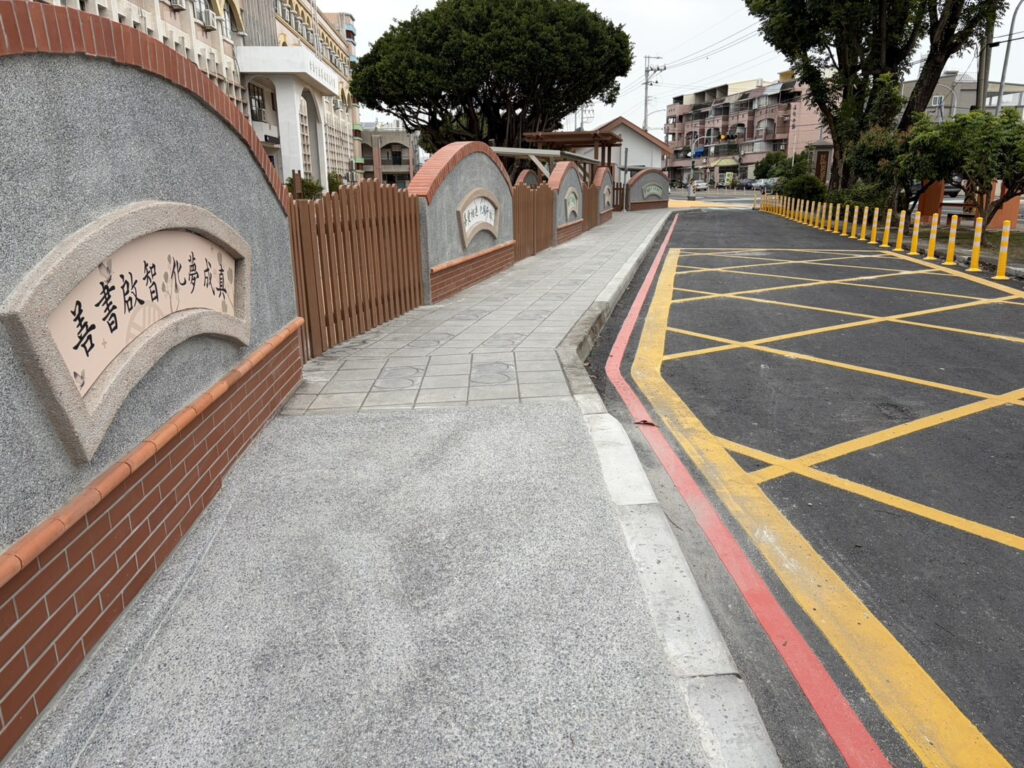 教育局長鄭新輝指出,本案總經費約新臺幣2,050萬元,重點包括東側圍牆內縮、拆除老舊停車棚與警衛室、增設避車彎與學生等候區,並採用透水磚鋪面與綠建材,兼顧排水、環保與景觀。完工後,人行空間拓寬、動線清晰,家長臨停接送更有秩序,通學尖峰安全性明顯提升。
