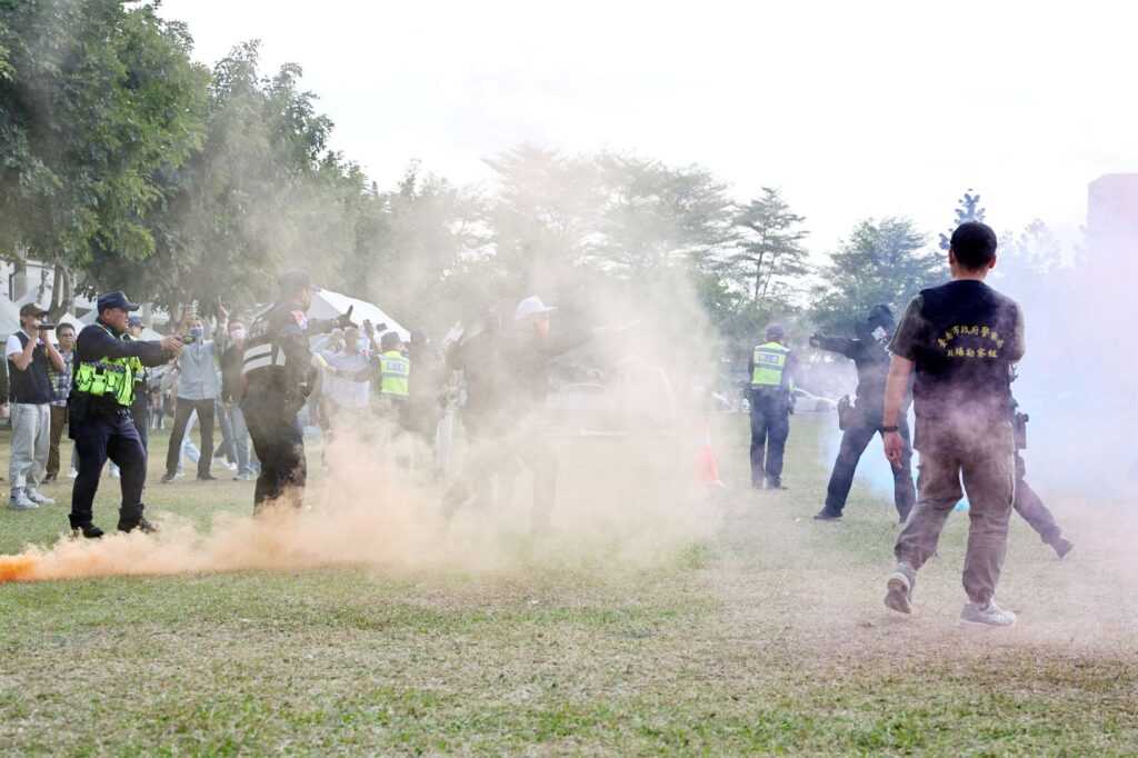演練情境為嫌犯先丟煙霧彈,試圖引發恐慌。