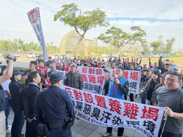 村民認為,業者新建三百坪雞舍恐汙染地方環境,養雞場有雞屎臭味,隨風飄散影響周圍五個村莊,未來只能與雞屎味共存,且業者現在趕工興建,連假日都持續施工,大型車輛頻繁出入,輾壞自行車步道,且持續協調未果,盼業者立即停工,保衛家園拒絕雞場。