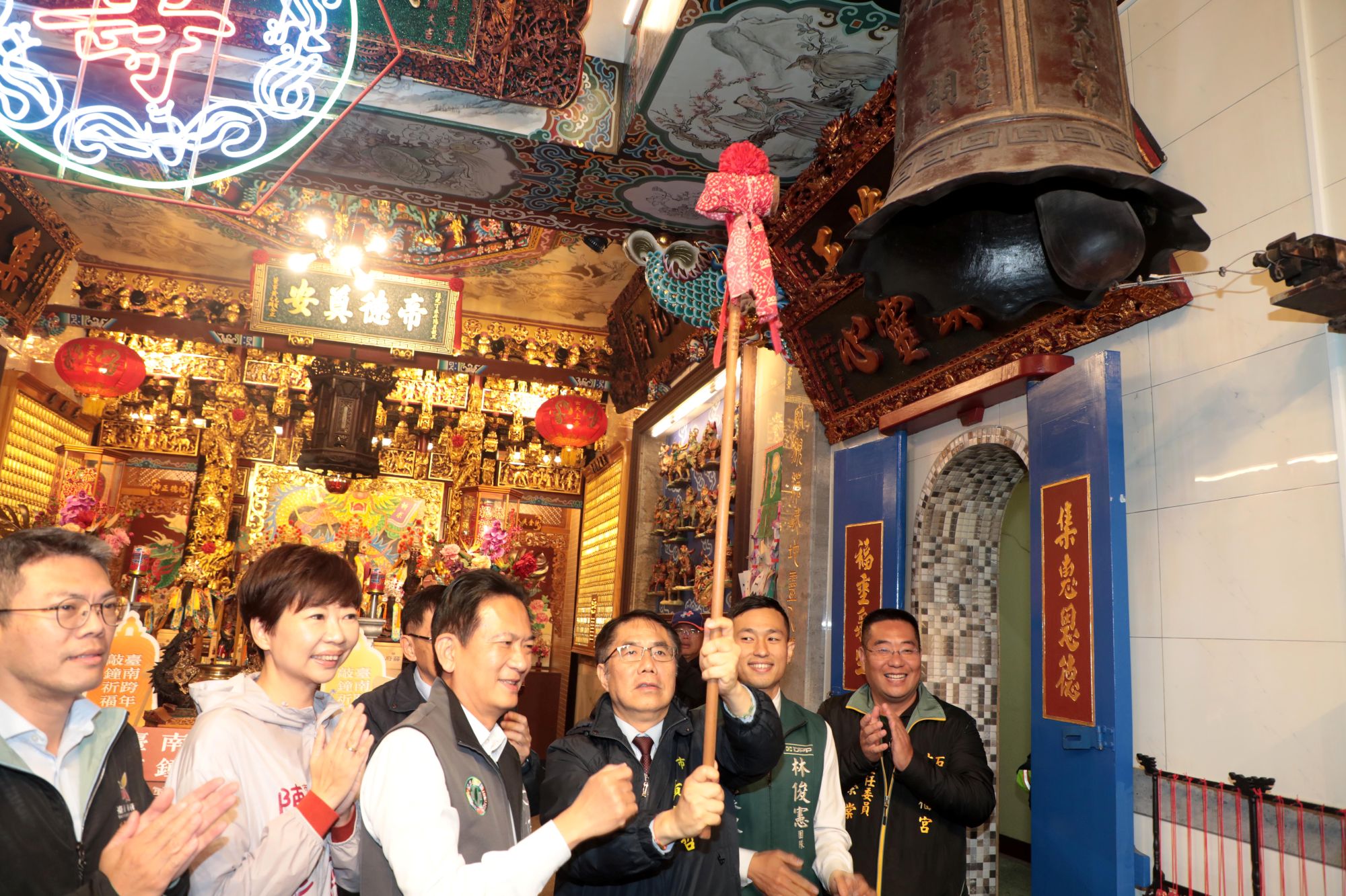 31日晚間黃偉哲市長在集福宮敲響鐘聲,臺灣府城隍廟則特別邀請信眾親自敲響百年古鐘,讓歷史鐘聲在新舊年交會之際再度迴盪,為跨年夜增添文化厚度與儀式感,也象徵平安與祝福綿延不絕,成為今年「敲鐘祈福」的特色亮點之一。