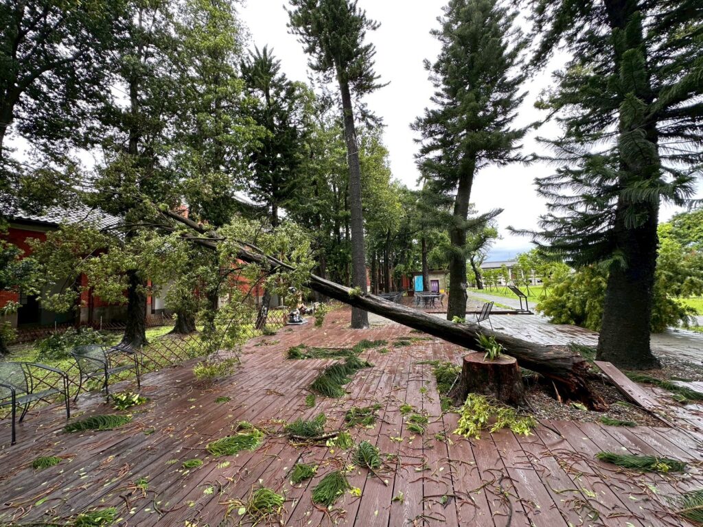 但近幾年極端氣候也對生態造成嚴重打擊,去年風災來襲,位於B館前的一株百年羅漢松不敵強風倒下,經專家全力搶救仍回天乏術,館方忍痛移除。但老樹並未因此消失,它的木材被妥善保存,在臺南家具產業博物館與永興家具團隊協助下,轉化為一張可被人們再次使用與感受的「共享長凳」,讓生命以另一種形式延續。