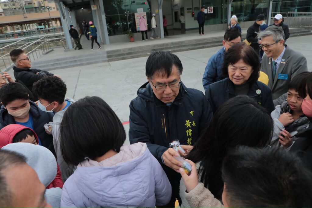 台南市2日清晨受強烈大陸冷氣團影響,氣溫只有14-16度,但卻有一群跑者不畏低溫,在寒風中參加公益活動路跑。市長黃偉哲一早前往台南新營火車站為這群「勇者」加油打氣,感謝他們熱心公益,在新的一年送出溫暖愛心幫助弱勢。