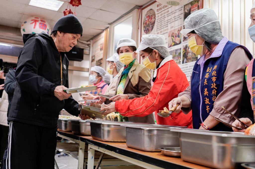 中午時分,社會局副局長吳淑芳和新莊區長朱思戎,到牡丹心據點和陳亞蘭、王彩樺等人一起幫忙長輩打菜。吳淑芳表示,感謝台灣優質生命協會在歲末天寒之際,專程到據點來關懷長輩。牡丹心社區曾獲得衛福部113年度金卓越社區殊榮,據點平時提供多元福利服務,除了長輩,還有兒少、新住民和身障者等。