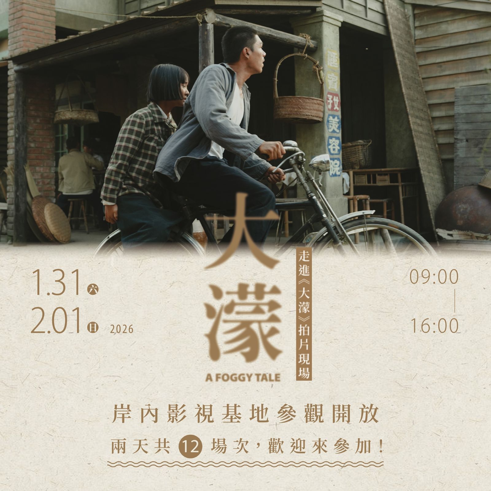 電影《大濛》票房長紅、話題不斷,這次不只在戲院看得到,還能走進真實拍攝現場!臺南市政府文化局特別推出臺南限定活動,邀請大家走進《大濛》實際拍攝搭景的片場空間,親眼看看電影畫面背後的秘密!「走進《大濛》拍片現場—岸內影視基地參觀開放」將於115年1月31日(六)及2月1日(日)登場,活動採分梯次參觀,每梯次100人、每日6梯次,兩天共12梯次,讓影迷與民眾近距離感受電影拍攝的臨場感,實際走進電影中的時代場景,體驗只有在臺南才能遇見的影視風景。