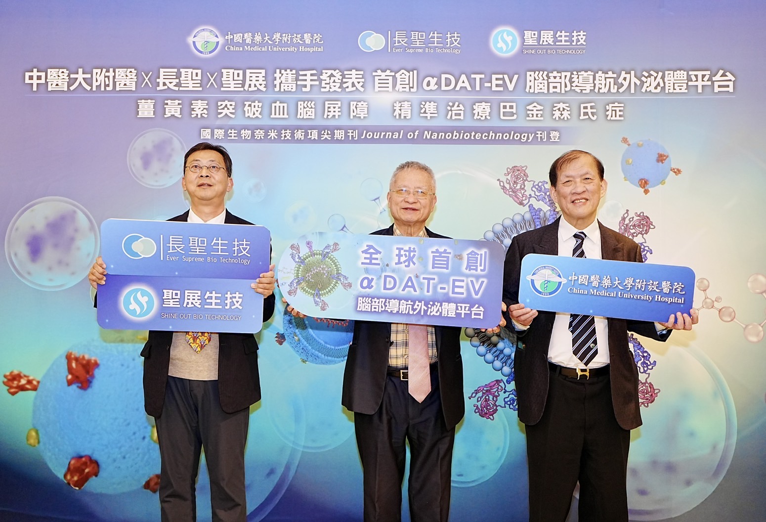 中國醫藥大學附設醫院院長周德陽所領導的研究團隊攜手長聖生技、聖展生技,再度於外泌體藥物遞送技術上取得重大突破。繼成功開發針對實體腫瘤之HLA-G 標靶外泌體平台後,進一步將外泌體藥物載體技術延伸至高技術門檻的中樞神經系統(CNS)領域,成功開發出全球首創具主動導航能力的「αDAT-EV腦部導航外泌體平台」,能有效攜帶藥物主動穿透血腦屏障(BBB),並導向巴金森氏症(PD)相關受損神經區域,為神經退化性疾病治療開啟全新可能。此項研究成果已獲國際生物奈米技術頂尖期刊《Journal of Nanobiotechnology》接受刊登。