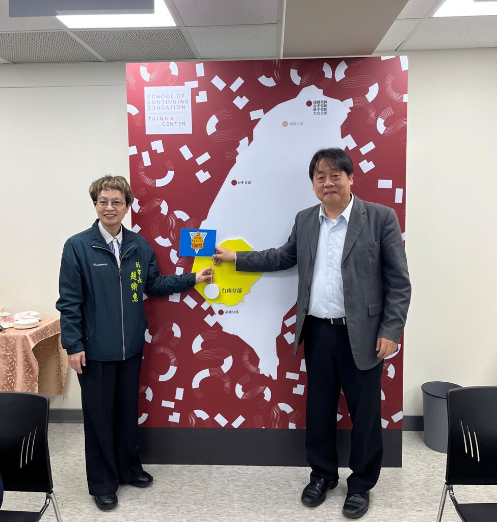 文化大學校長王子奇在副市長趙卿惠的見證下,插旗台南宣告台南分部正式營運。