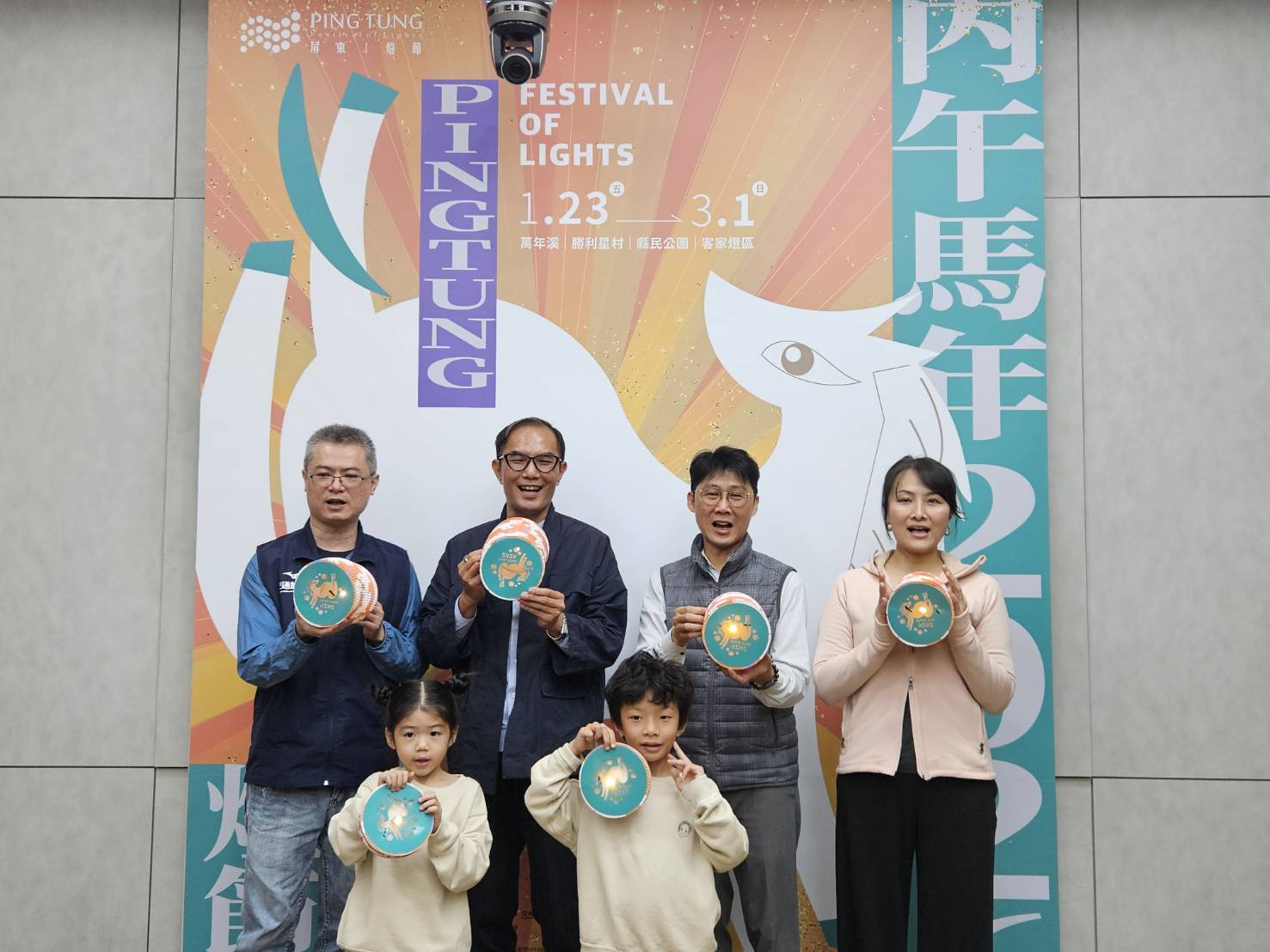 屏東縣府14日同舉行說明記者會,會中「馬耀風情」小提燈首度亮相即成焦點,以風琴摺紙造型搭配簡約線條勾勒駿馬姿態,並結合復古黃光LED設計,展現溫潤光感與馬年喜慶氛圍。小提燈將於1月23日下午5時在縣民公園燈區首波發放,邀請民眾把握機會領取。