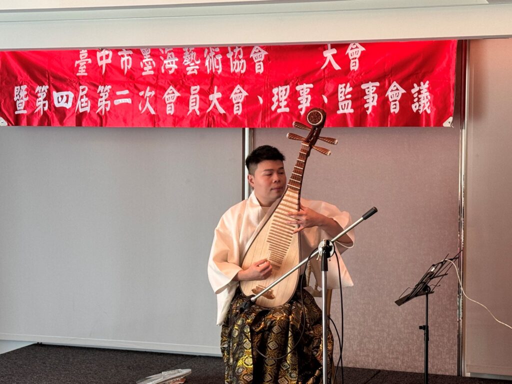 墨海會員大會在琵琶王子黃俊豪演奏動聽樂曲中揭開序幕。(圖:墨海藝術協會提供)