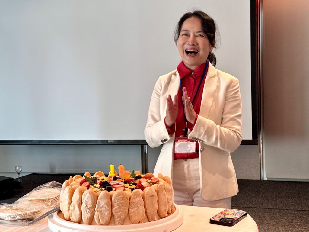會員大會壓軸為溫馨的慶生活動,1月17日剛好是廖迎晰理事長生日,協會特別準備一個大蛋糕,在眾人齊唱生日快樂歌及祝福聲中,廖迎晰理事長含著淚水切下蛋糕。她激動的說,今天很開心跟大家一起過生日,真的很感動。