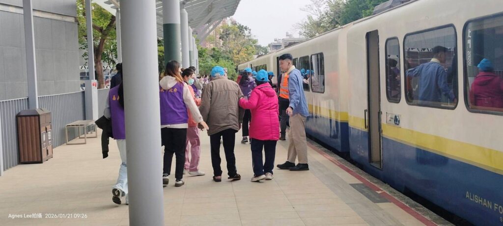 有百年歷史的阿里山林業鐵路,於民國113年正式恢復全面通車,象徵阿里山森鐵邁入新里程碑;本次的關懷長者列車體驗之旅,結合生態主題列車「栩悅號及享有「移動的美術館」美譽的「福森號」,規劃關懷長者列車體驗行程,自北門站往返鹿滿站,透過鐵道風景、專業導覽與在地美食,讓獨居長者在行進的列車中感受陪伴與文化溫度,實踐高齡友善與促進社會參與的政策精神。面對嘉義市即將邁入「超高齡社會」,市府也積極回應行政院《高齡社會白皮書》所揭示之政策方向,除持續提供獨居老人關懷訪視服務及居家安全設備裝置服務外,並提供更多元化社會參與活動,鼓勵長輩能走出家門,踏入社區,擴展人際關係,因為真正的健康,來自身體的活動、心理的支持,以及與人互動所累積的價值感與歸屬感,逐步實現從他助、自助到互助的良性循環。