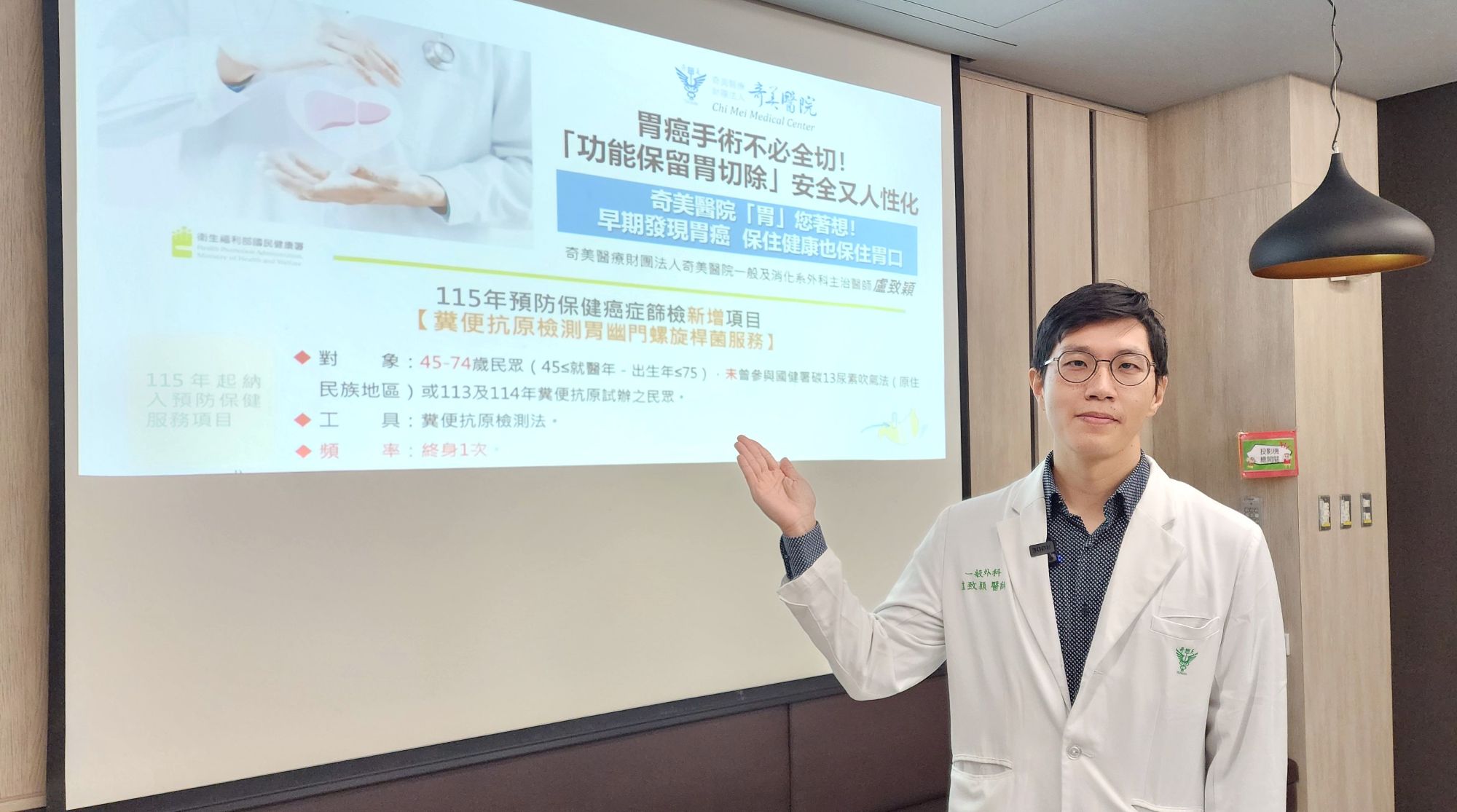 胃癌長年位居國人重要癌症死因之一,隨著治療觀念與手術技術進步,醫界已不再只以「腫瘤切乾淨」為唯一目標,而是進一步追求「保留器官功能、提升術後生活品質」。過去胃癌手術常面臨全切除或大面積切除,導致病友術後飽受體重驟降、營養不良及傾倒症候群之苦。奇美醫院一般及消化系外科主治醫師盧致穎表示,隨著微創技術進步,針對早期胃癌推動「功能保留胃切除手術」,不僅能有效控制癌症,五年存活率最高達90%,更能減少術後併發症,讓病友在抗癌成功後,依然能保有高品質的飲食與生活。