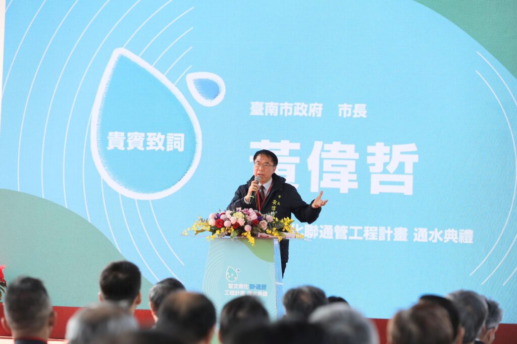 攸關南部地區水資源穩定供應的重大水利建設「曾文-南化水庫聯通管工程計畫」,歷經多年施工,23日上午在曾文水庫舉行通水典禮,行政院長卓榮泰親自南下主持,並與台南市長黃偉哲共同啟動通水,見證南部地區水資源調度體系邁入嶄新里程碑。而隨著南部科學園區、沙崙智慧綠能科學城及相關高科技產業持續擴展,用水需求大幅成長,該工程完工通水後,將有效提升台南及南部地區整體供水調度能力與抗旱韌性,為市民生活與產業發展提供穩定可靠的水資源基礎。