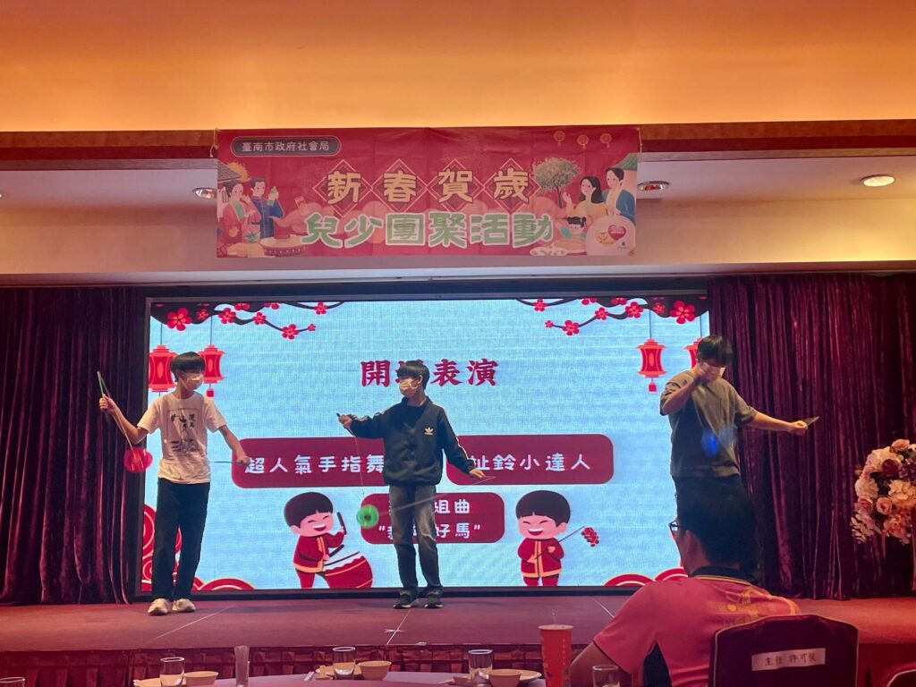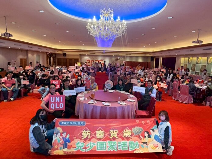 農曆春節將至,為陪伴南市監護兒少在歲末寒冬中感受關懷與溫暖,臺南市政府社會局24日假總理大餐廳辦理「馬年開基幸福到 福(服)氣連連伴你行」春節活動,邀請監護兒少提前團圓圍爐迎新年。副市長姜淋煌在社會局長郭乃文陪同下,代表黃偉哲市長到場致意並致贈春節紅包與祝福禮品,感謝開基玉皇宮長期關懷弱勢、財團法人永長興社會福利慈善基金會與UNIQLO等民間資源長期支持,共同為孩子們送上新年的溫暖祝福。