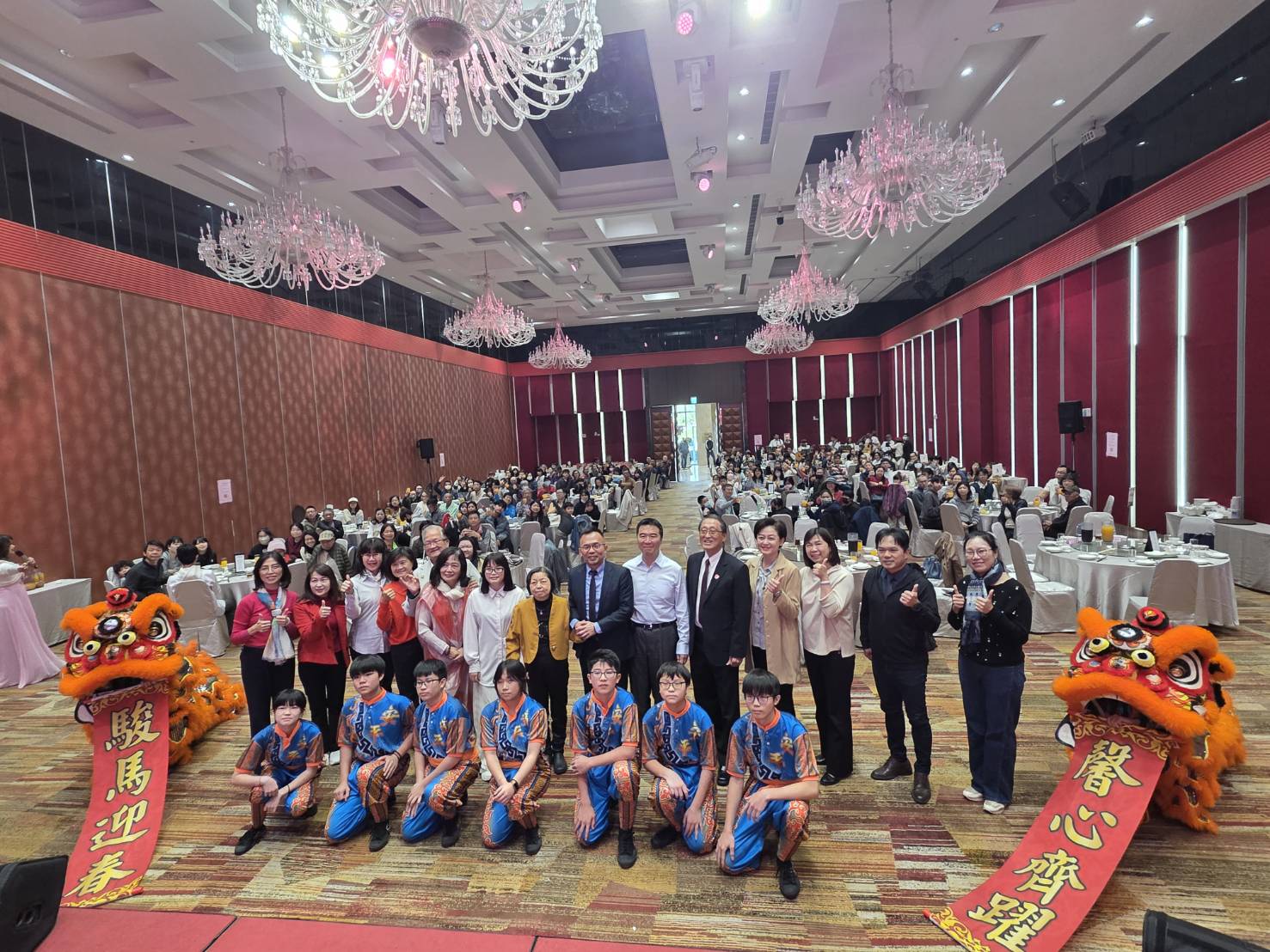 法務部保護司司長洪信旭及總會顧問張紜瑋,臺南地檢署檢察長鍾和憲與臺南市政府社會局局長郭乃文特地參加餐會與大家同歡。活動現場首先播放重傷馨生人特色短影片,呈現馨生人及其家庭在歷經重大變故後,逐步走向復原與重建的生命歷程,讓與會者深刻感受陪伴與支持的重要性。隨後由臺南地檢署檢察長鍾和憲致贈春節關懷禮盒,象徵分會陪伴馨生人走過低谷、迎向新一年的祝福與心意。接著在臺南市安平國中劍獅鼓隊祈福舞獅熱鬧進場中揭開活動序幕,象徵辭舊迎新、祈願平安順遂,為現場注入滿滿祝福與希望。