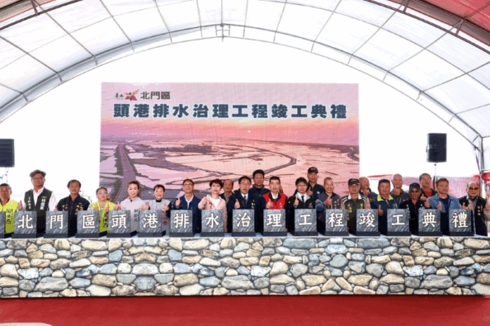 為強化北門區抵禦沿海暴潮及颱風豪雨防洪能力,台南市政府爭取經濟部水利署前瞻水安全計畫7,000萬元補助,辦理「北門區頭港排水治理工程」,共計完成護岸改善1,263公尺。市府26日舉辦工程竣工典禮,市長黃偉哲表示,本工程透過護岸背填培厚及生態友善工法,除大幅提升排水護岸安全性,並同時兼顧低碳與生態保育,展現中央與地方攜手合作,防洪安全與生態環境雙贏成果。