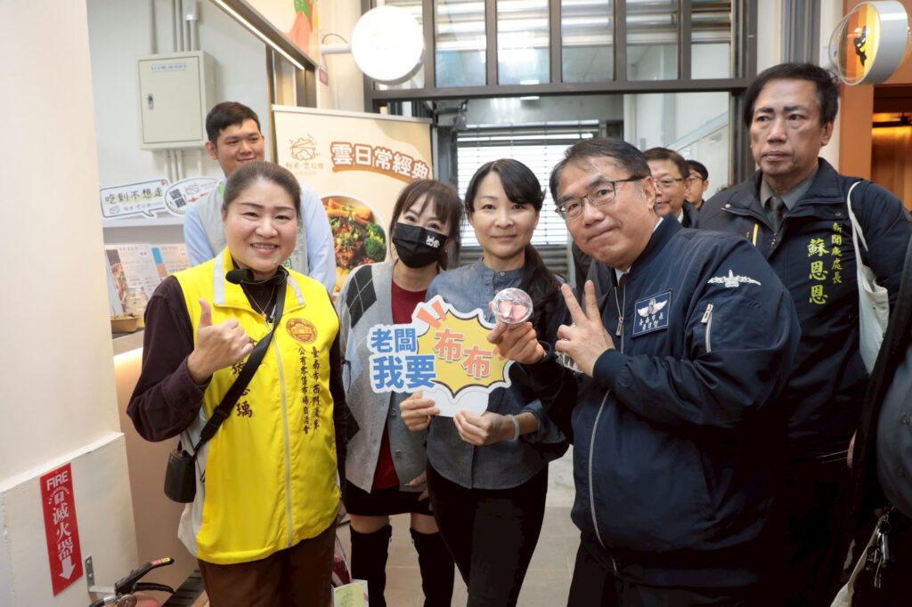 黃偉哲市長走訪西門市場南區美食廣場,與攤商及民眾合影互動,展現市府推動市場活化、支持在地攤商的用心與成果。