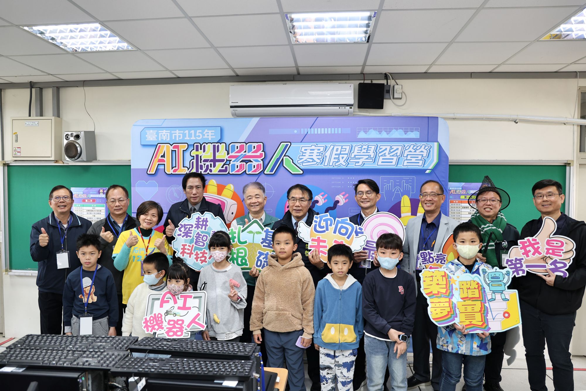 市長黃偉哲肯定中華電信及學校,與市府攜手合作,推動AI機器人寒假營隊。