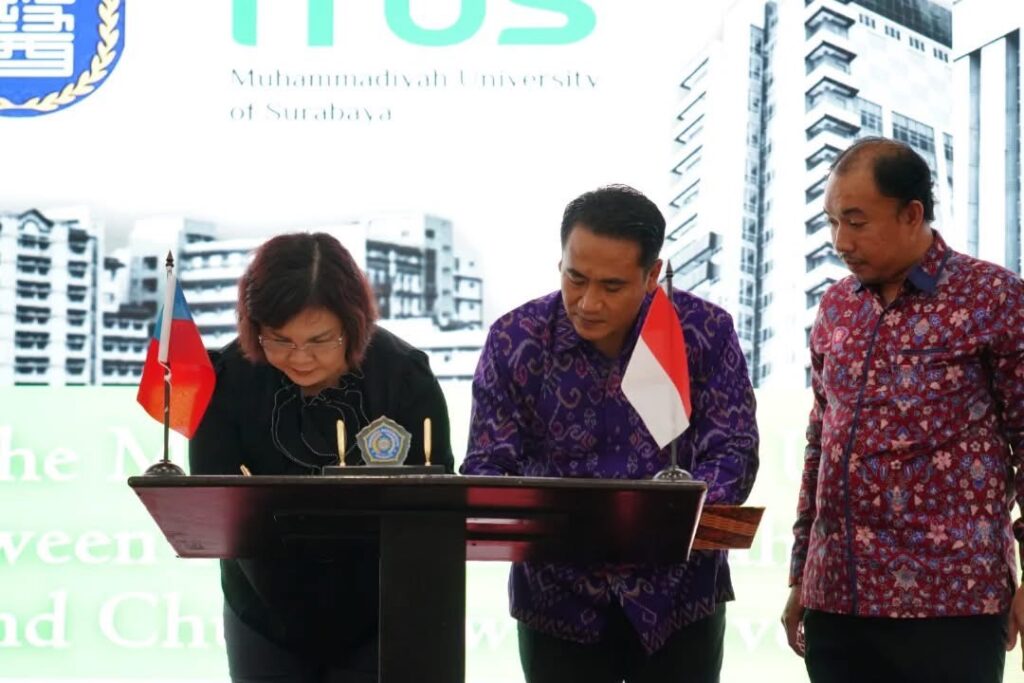 中華醫大與印尼穆罕默德(Muhammadiyah)大學簽署合作備忘錄儀式於1月27日在穆罕默德大學舉行,由中華醫大校長李碧娥博士和穆罕默德大學校長Dr. Mundakir, S.Kep., Ns., M.Kep.代表兩校進行簽署,同行的中華醫大醫事學院院長楊堉麟、護理學院院長謝政蓉、醫學檢驗生物技術系主任黃昭祥等及穆罕默德大學一級主管和學生代表,也出席見證這場跨國學術合作結盟盛會。簽約當日,更吸引印尼國家電視台專程採訪,提升台灣高等教育在國際的能見度。