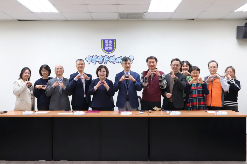 中華醫大與新營醫院主管團隊出席簽約結盟儀式,期許成為彼此的優良夥伴,共同培育醫護人才與推動學術研究。