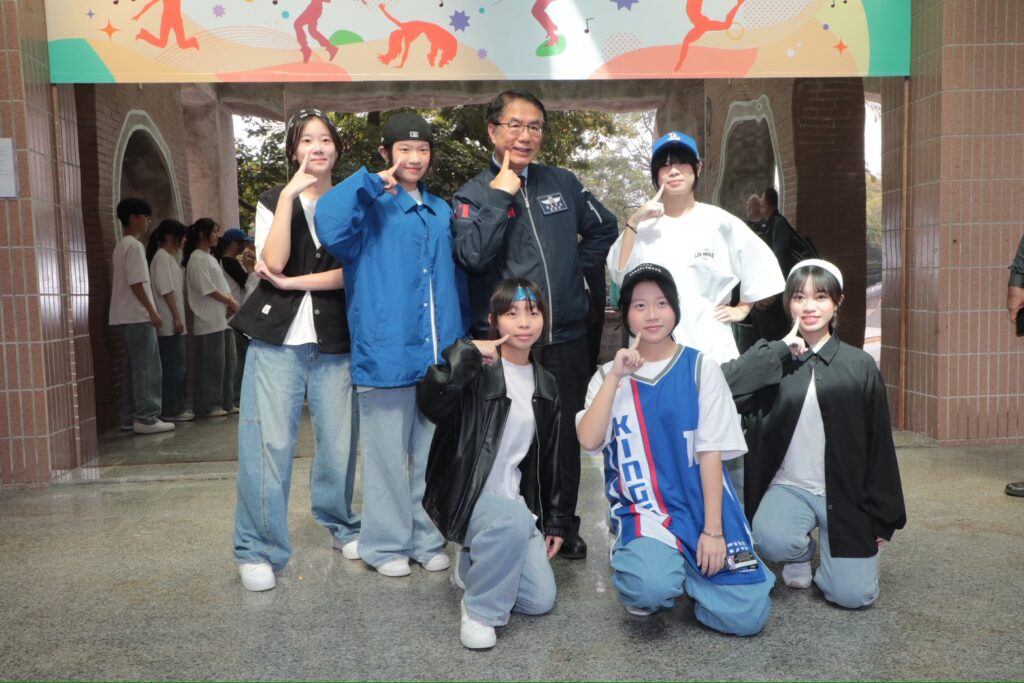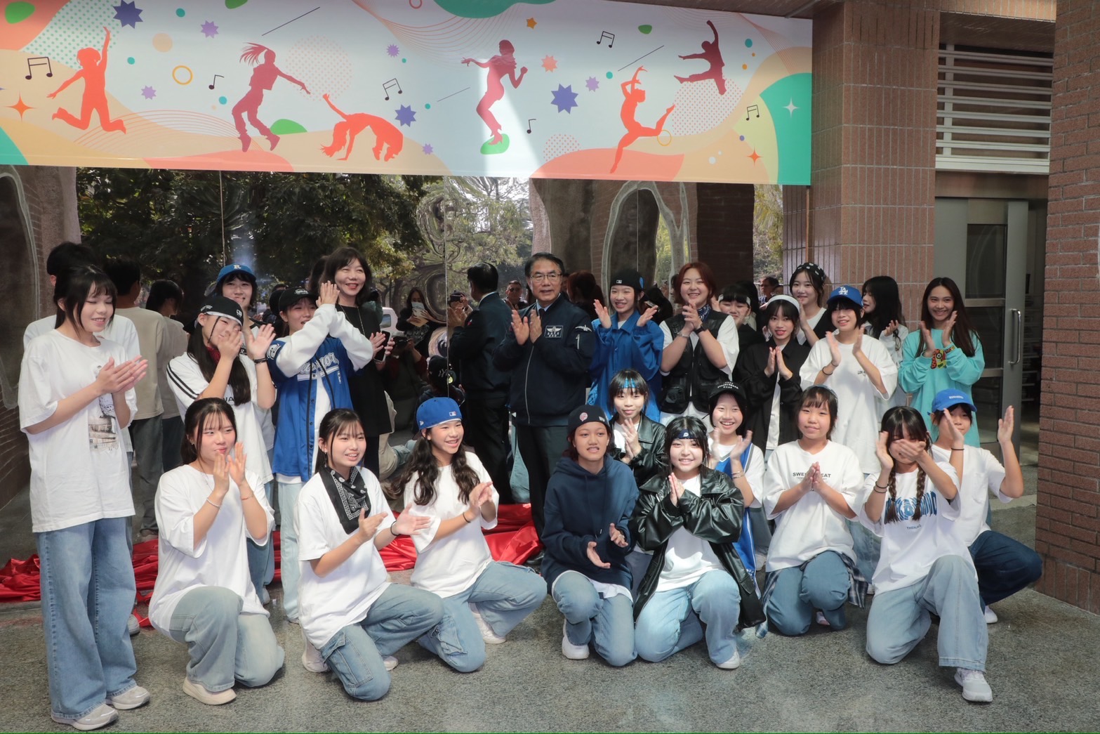 市長黃偉哲與新豐高中、長榮女中、黎明高中、歸仁國中、黎明國中等校熱舞、街舞社學生一同「開箱」練舞場。