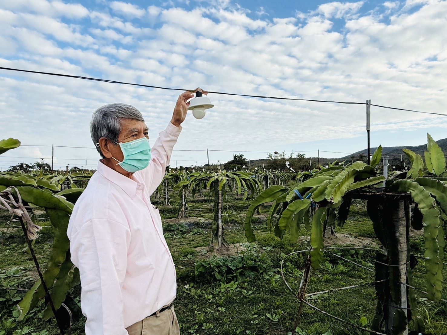 火龍果園加裝燈罩後,光線集中向下,夜間亮度配置更為合理,也減少不必要的光害。