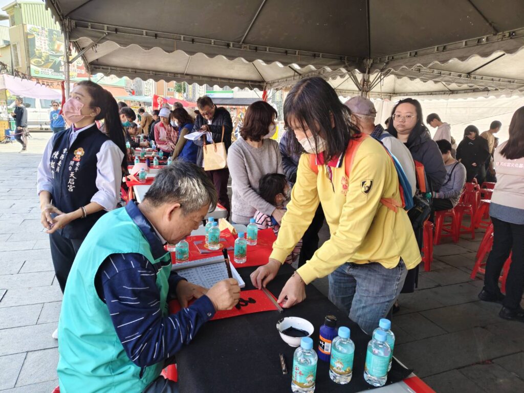 距離丙午年開春僅剩半個月,安平開台天后宮按慣例,邀請書法家在廟埕寫春聯,免費送給民眾,民眾在等待春聯的同時,也邀請茶藝老師在一旁擺桌泡茶讓民眾品茗,同時也邀請吉他老師與二胡老師在舞台上演奏,讓民眾在優雅的音樂中喝茶等待春聯。廟方主委盧友禮表示,他擔任主委以來每年均辦理此活動,今年邁入第6年。