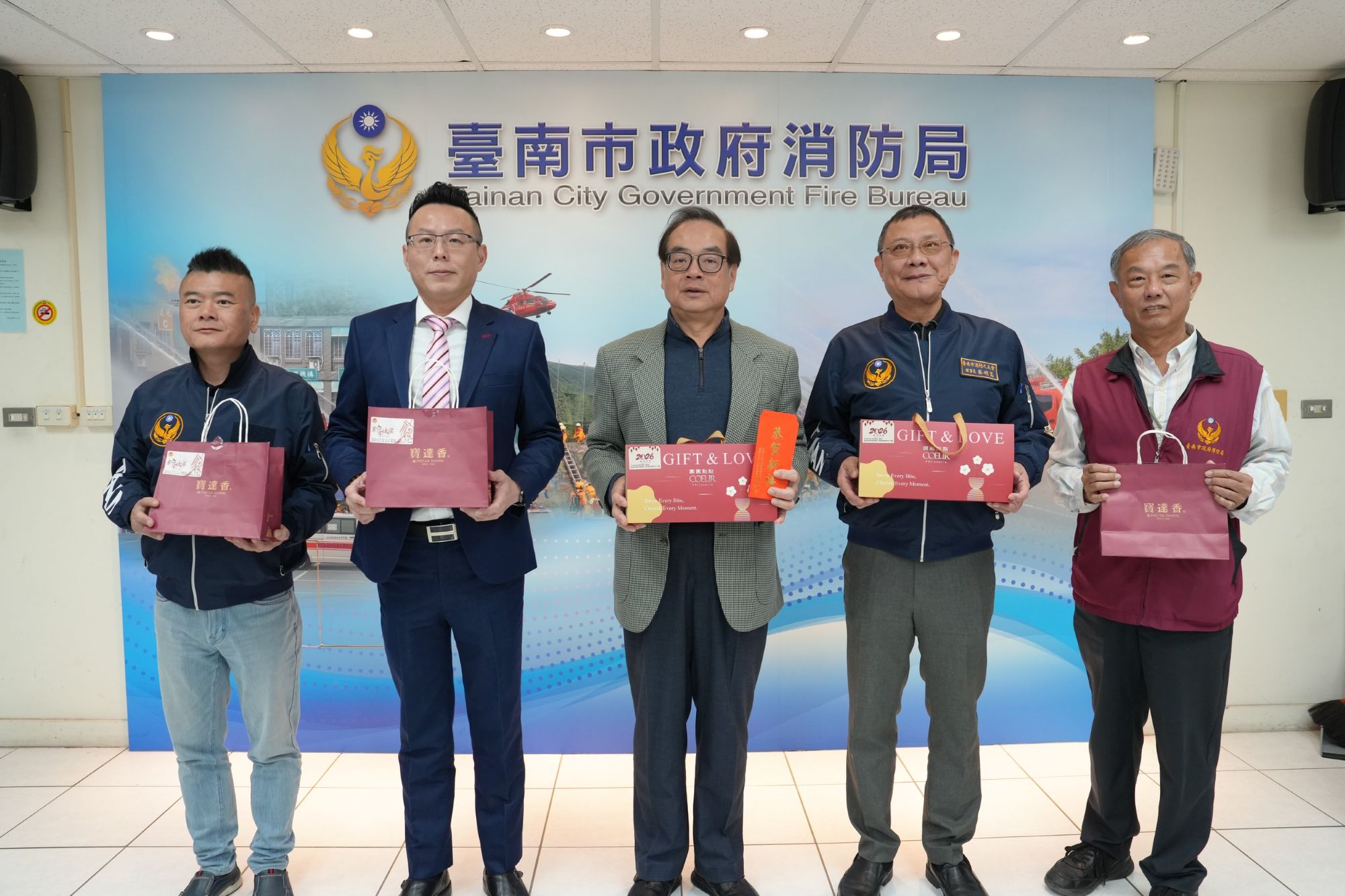 市長黃偉哲表示,春節是家家戶戶團圓的時刻,但消防人員仍堅守崗位守護市民安全,令人敬佩。非常感謝消防之友會在春節慰問中展現支持,蔡明憲理事長及其團隊永遠是臺南消防最堅強的後盾。