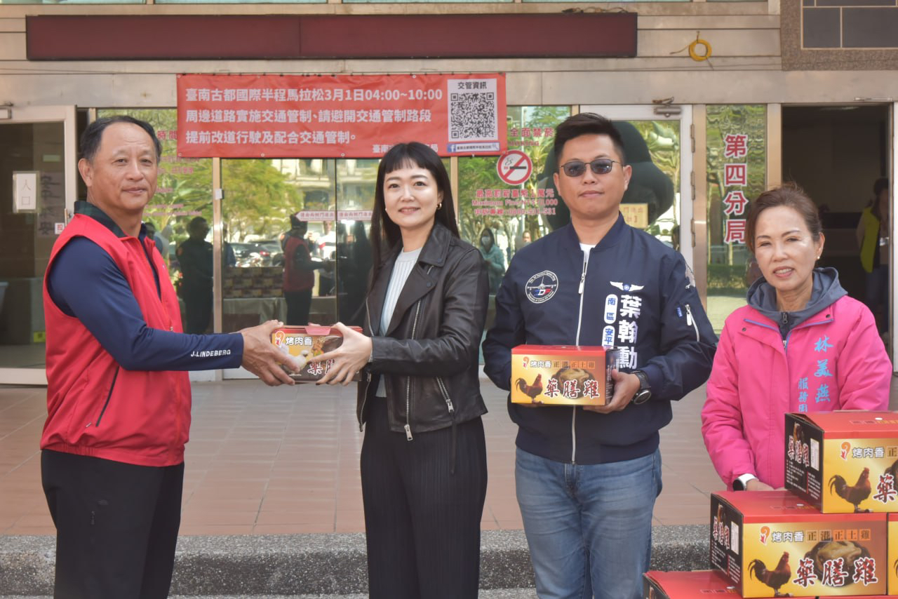 臺南市政府消防局於12日上午10時30分,在臺南市政府警察局第四分局一樓廣場舉行年菜捐贈儀式。由臺南市議員林美燕引介,媒合在地績優廠商「長載實業股份有限公司」陳秀換董事長,慷慨捐贈360份年菜禮盒,慰勞春節期間仍需堅守崗位、守護治安與公共安全的警察、消防及社區巡守人員。