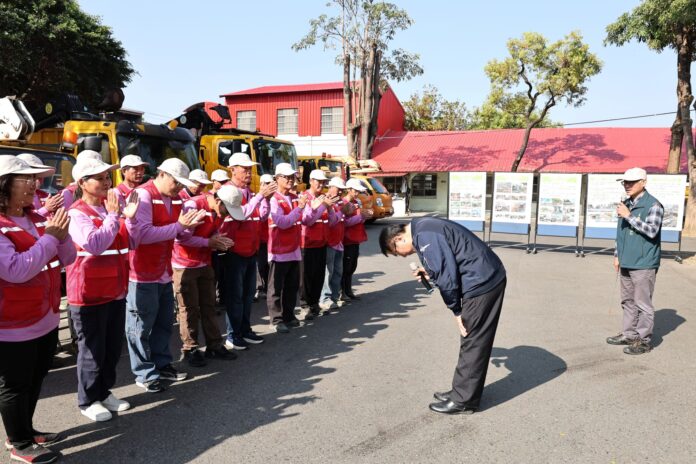 黃偉哲表示,在農曆年前最後一個上班日,特別代表市民向工務局第一線同仁表達感謝。過去一年同仁除肩負日常養護與建設任務,面對地震與風災等突發事件,也第一時間投入,甚至跨縣市支援花蓮救災,展現高度專業與責任感,令人敬佩。他再次感謝同仁長期堅守崗位,並提前向大家拜年,祝福新春順利、闔家安康。