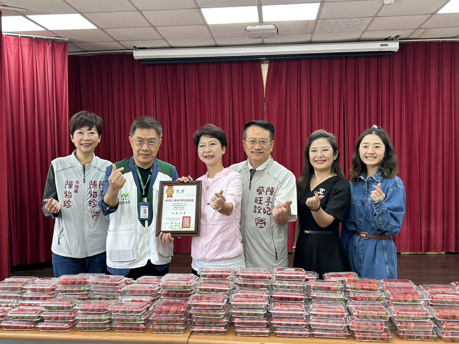 草莓季進入尾聲,春天的甜味也來到台南。立法委員陳亭妃、市議員陳怡珍與陳亭妃服務團隊執行長蔡旺詮25日上午攜手民間善心力量,前往南家扶中心捐贈約250盒新鮮草莓,把當季最甜美的滋味送給弱勢家庭。當一箱箱草莓送到現場,孩子們圍在旁邊好奇張望,有人忍不住說「好香」,讓現場多了幾分春天的溫暖。