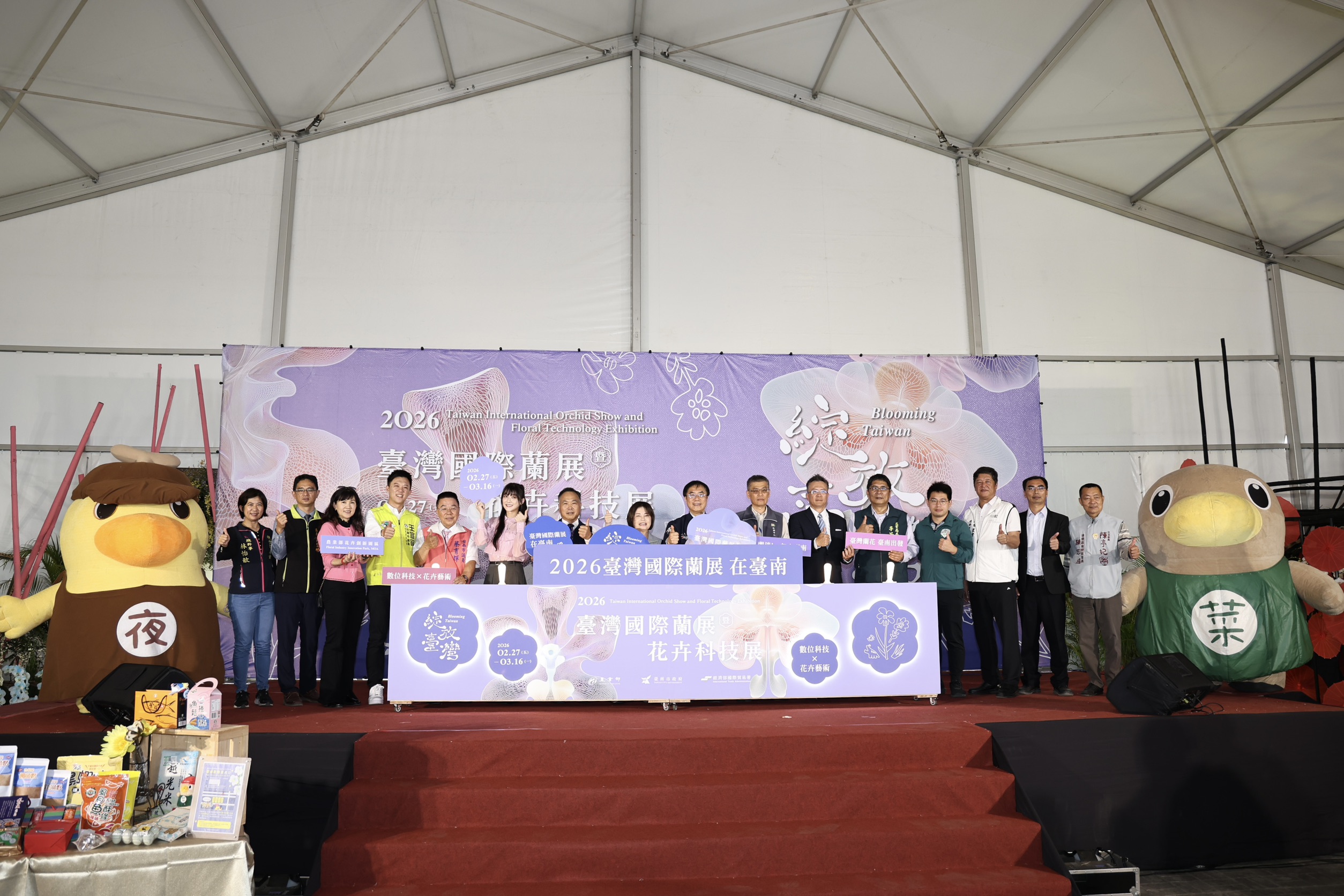 「2026台灣國際蘭展暨花卉科技展」將於2月27日至3月16日在台南後壁農業部花卉創新園區盛大登場。台南市政府25日於園區舉行展前記者會,市長黃偉哲親自出席,攜手宣傳大使林逸欣及吉祥物「菜奇鴨」、「夜奇鴨」走訪展館,搶先揭露本屆蘭展亮點,包括融合莫內、梵谷及葛飾北齋等名畫家作品的噴墨蘭花、裸視3D沉浸體驗、上千株國內外優秀蘭花展示,以及農特產精品館和幸福市集,讓民眾賞花之餘,也能一次購足台南在地農產與特色伴手禮。