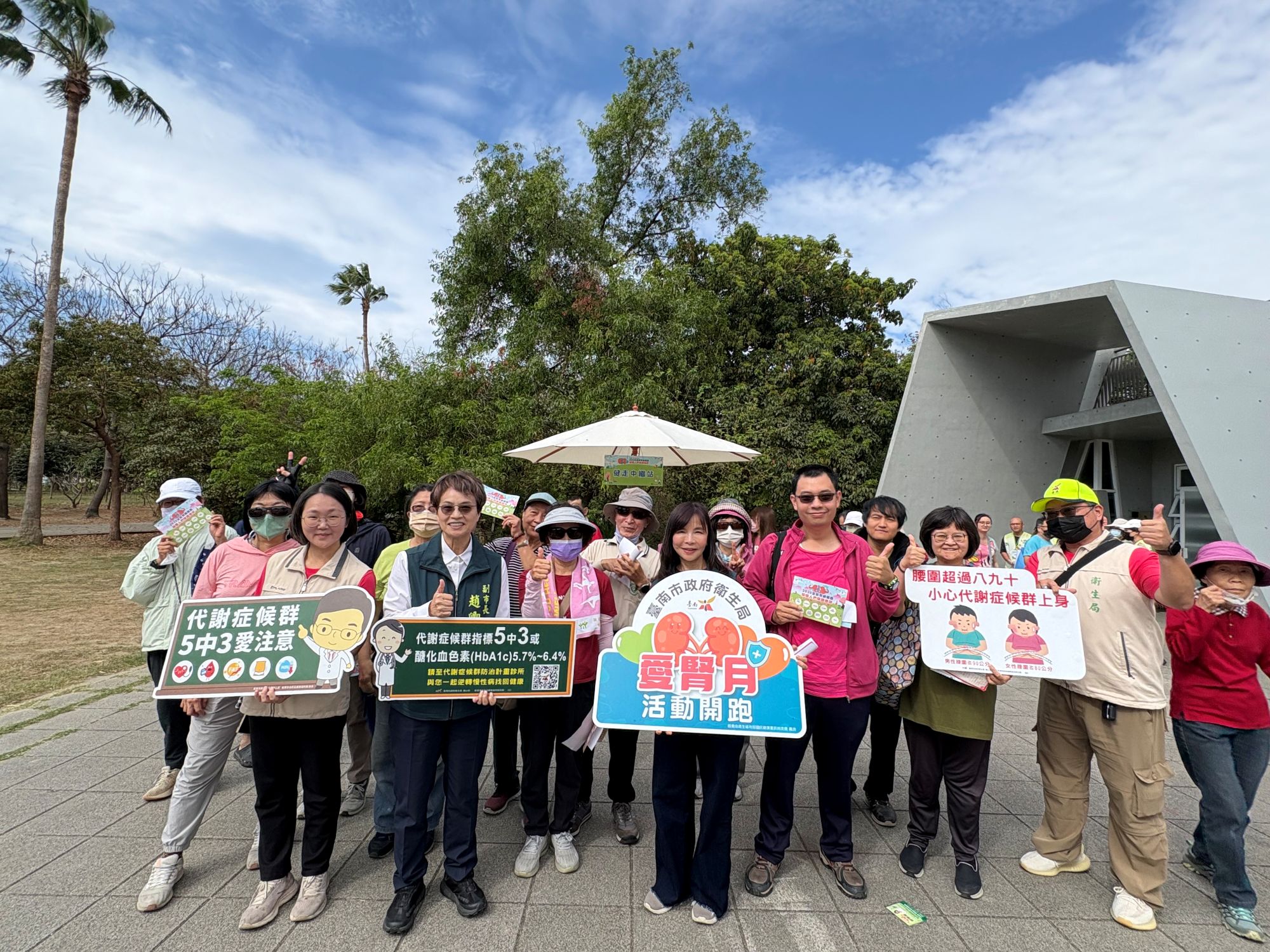 臺南市政府衛生局27日於巴克禮公園舉辦2026世界腎臟病日宣導暨健走活動,與國立成功大學醫學院附設醫院、奇美醫院、郭綜合醫院、台南新樓醫院、顏大翔聯合診所共同合作,現場除了衛教資訊,也安排豐富的互動攤位與自我檢測工具,協助市民了解「泡、水、高、貧、倦」等腎病五大徵兆,共573位民眾參與闖關及健走活動,熱鬧非凡。