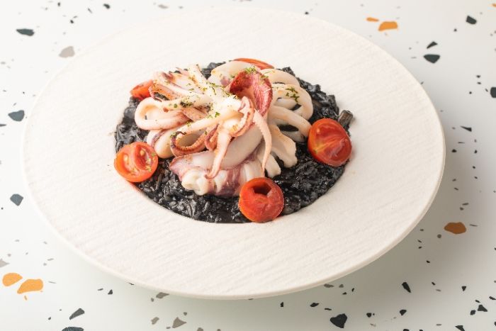 「紐約風燻鮭魚貝果 (售價 368 元)」嚴選肉質細嫩、帶有淡雅煙燻香氣的挪威鮭魚,夾入厚實Q彈的職人貝果,交織出宛如紐約晨間的洗鍊風味。而「墨魚中卷燉飯 (售價 388 元)」採用濃郁墨魚精華入味,每一口燉飯都吸飽極致的鮮甜海味,最吸睛的是豪邁盛放「一整隻」鮮脆中卷,絕對驚艷味覺與視覺層次。