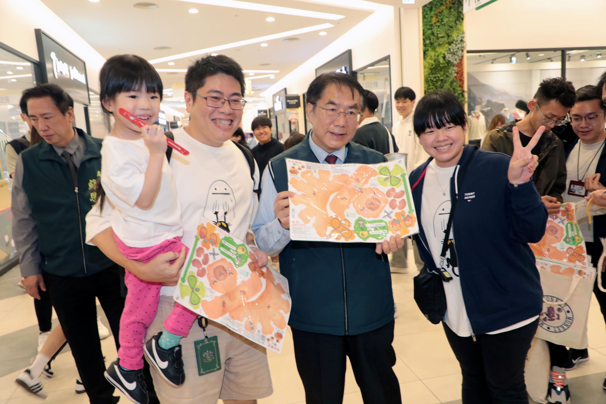黃偉哲表示,小提燈是元宵節不可或缺的應景好禮,今年推出的卡比胖拉造型結合台南盛產的芒果、柚子與桔子等水果元素,造型可愛討喜,富含在地特色與城市意象。繼昨日於西市場發送廣受好評後,今日特別選在三井Outlet發放,盼結合大型商場人潮,帶動周邊商圈買氣,讓市民朋友在領取小提燈之餘,也能享受購物與美食樂趣。