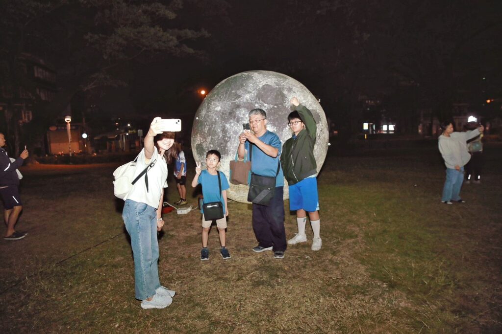 民眾與月球模型合照。