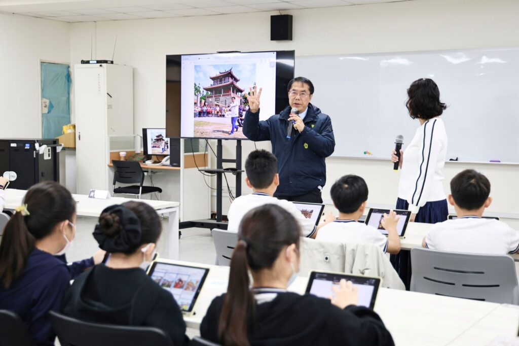市長黃偉哲表示,台南市積極推動AI教育,讓科技融入日常教學,目前各校電腦教室已協助教師將AI應用結合課綱課程,透過邊緣運算技術進行AI圖像生成,不僅能即時與師生互動,也能有效降低雲端運算所需的大量能源消耗,兼顧科技學習與節能理念。他也鼓勵學校培育「種子教師」,將AI教學經驗帶回各校推廣,讓AI教育在校園間逐步擴散,未來也可評估設立AI學習中心,進一步與社區互動交流。