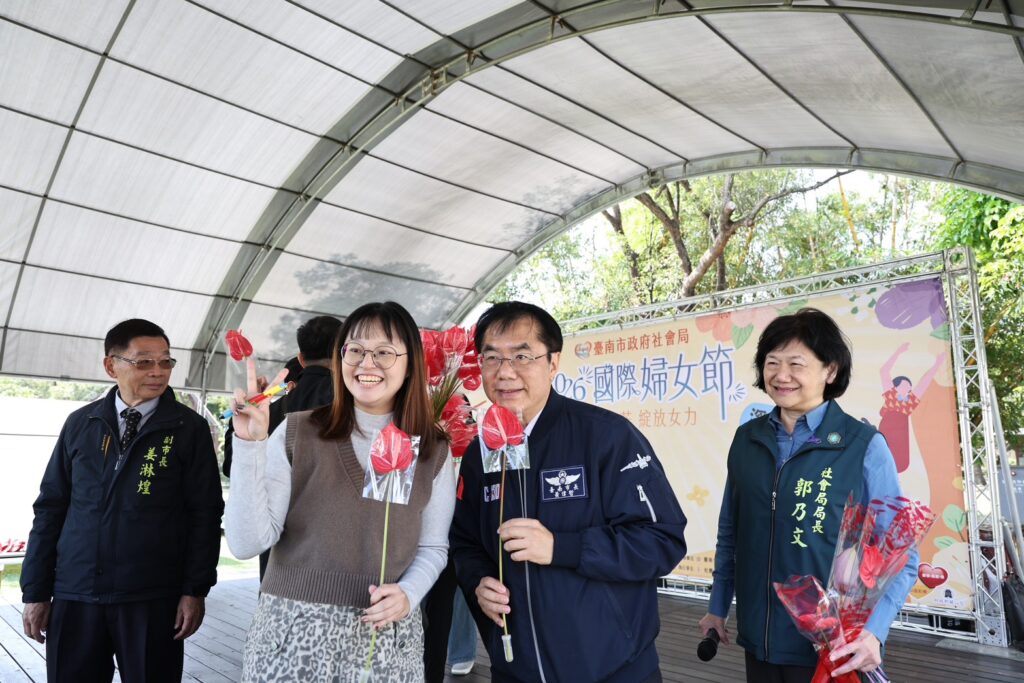市長黃偉哲7日上午前往總爺藝文中心出席活動「匯聚光芒‧綻放女力」國際婦女節系列活動,並致贈火鶴花給現場女性朋友,象徵祝福與感謝。