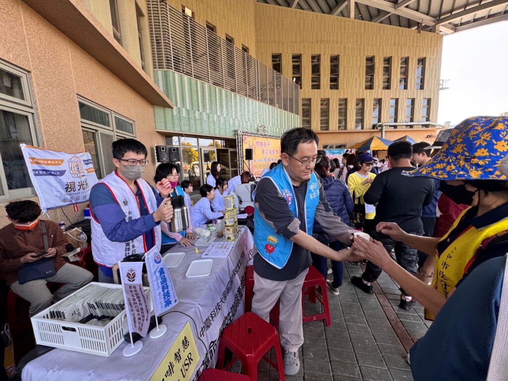 中臺科大招待民眾免費品嘗國姓鄉出產的咖啡。(秦硯琪攝)