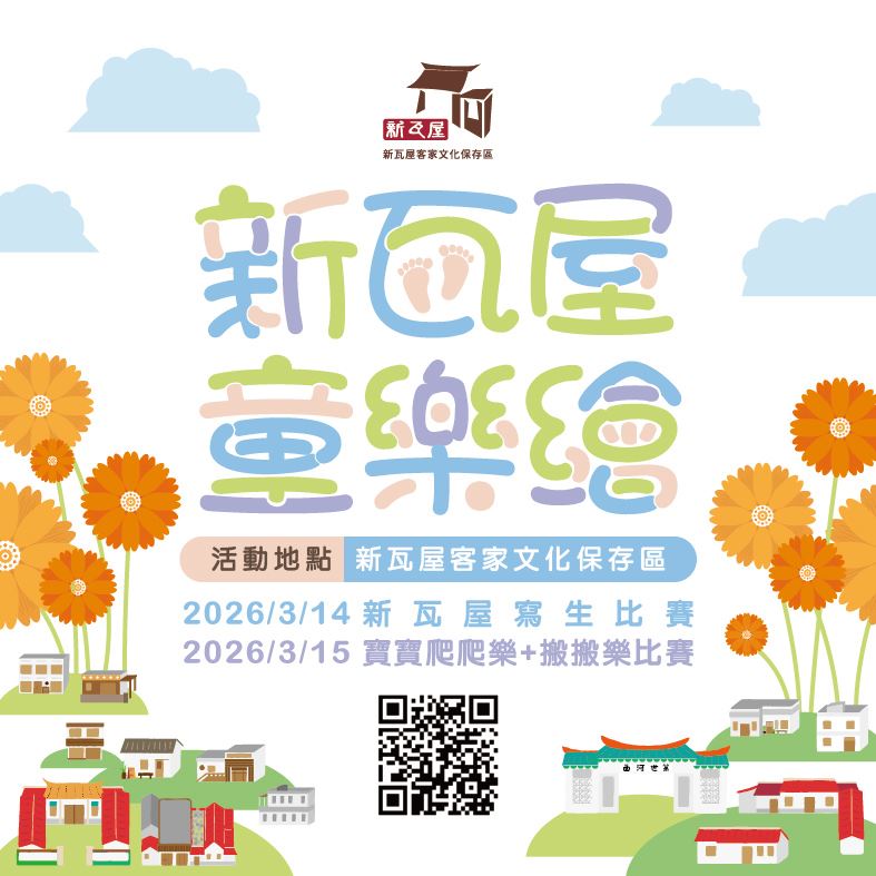 縣府文化局表示,本週末連續兩天,就來新瓦屋客家文化保存區,大寶畫畫、小寶比賽、家長血拼,多元體驗、吃喝玩樂、追趕跑跳一次滿足。更多活動詳情及報名資訊,歡迎至縣府文化局粉絲專頁(https://www.facebook.com/hchcc.gov/)查詢。