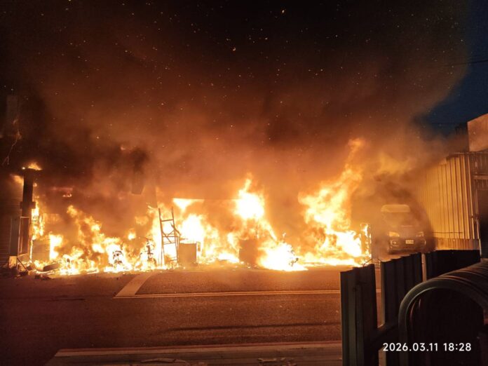 119勤指中心是於11日傍晚18:19接獲民眾報案。據附近居民表示,大火是從二王路的機車行竄出,因為機車行內有易燃的機油等物品,還有清潔噴罐等物,先是濃煙滾滾,接著火勢迅速直沖天空,不時夾雜著類似鞭炮的爆炸聲,甚是嚇人。