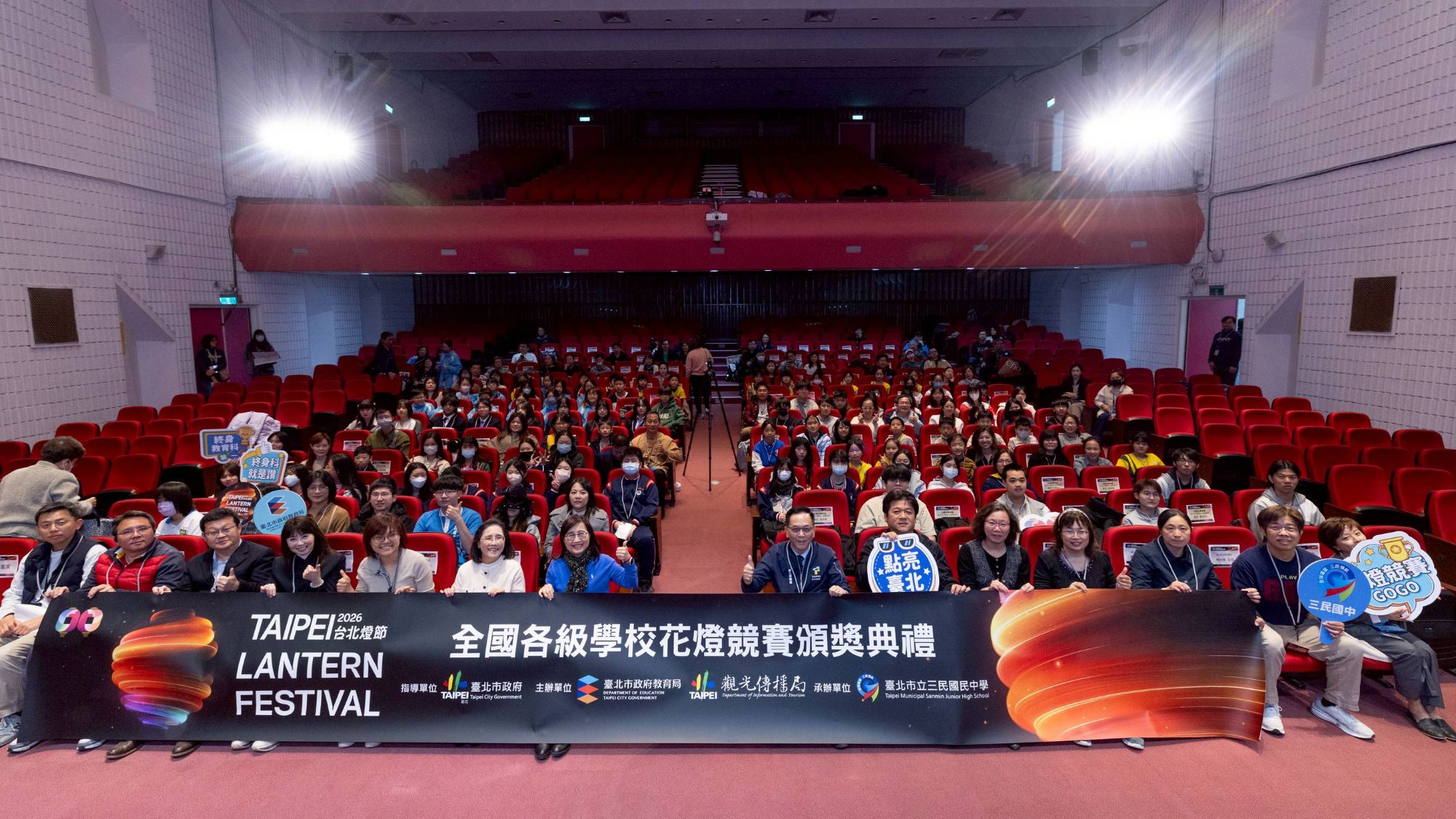 「2026台北燈節」全國各級學校花燈競賽於115年2月24日假北市中山堂廣場競賽燈區現場評選出得獎作品,並於2月25日正式對外展出。競賽類別計有大型主題燈座類29組及小型主題燈座類51組,共計有80件作品參賽,競爭激烈。經評選計5件特優、8件優等、11件甲等、13件佳作及2件優勝。為彰顯本市對傳統藝術的重視,臺北市政府教育局於3月13日辦理頒獎典禮,由臺北市政府林奕華副市長頒發獎狀予得獎者,鼓勵青年學子在花燈技藝上傳承與創新,讓傳統技藝代代永續,並賦予傳統花燈藝術嶄新面貌,再現風采。
