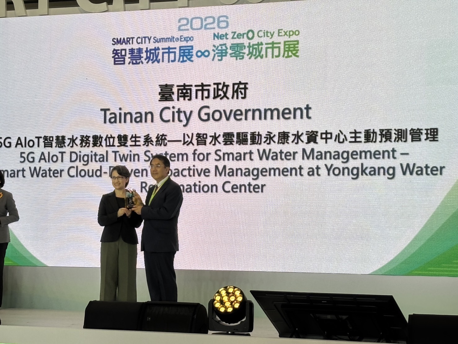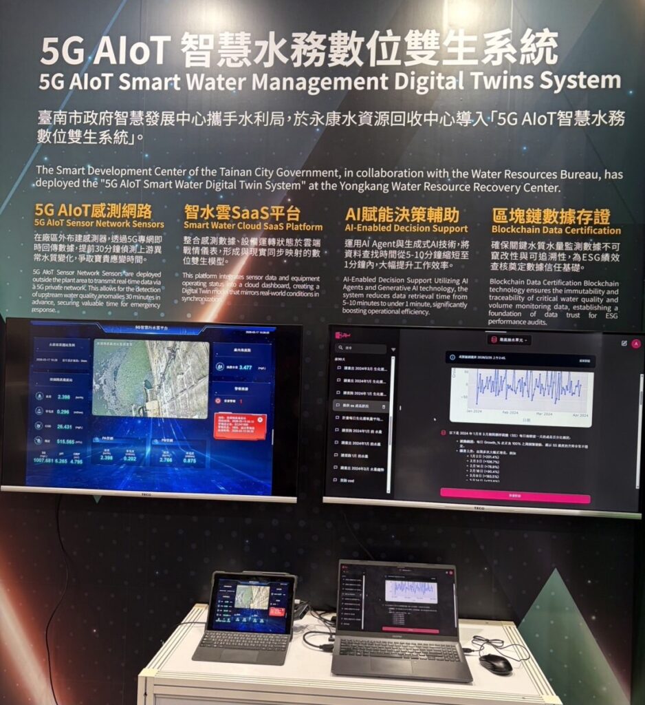臺南市政府水利局與研考會智慧發展中心合作推動「5G AIoT智慧水務數位雙生系統-以智水雲驅動永康水資中心主動預測管理」,榮獲2026年智慧城市創新應用獎。市長黃偉哲於115年3月17日出席頒獎典禮,並由副總統蕭美琴頒發獎項,展現臺南市在智慧水務與數位治理領域的創新成果。