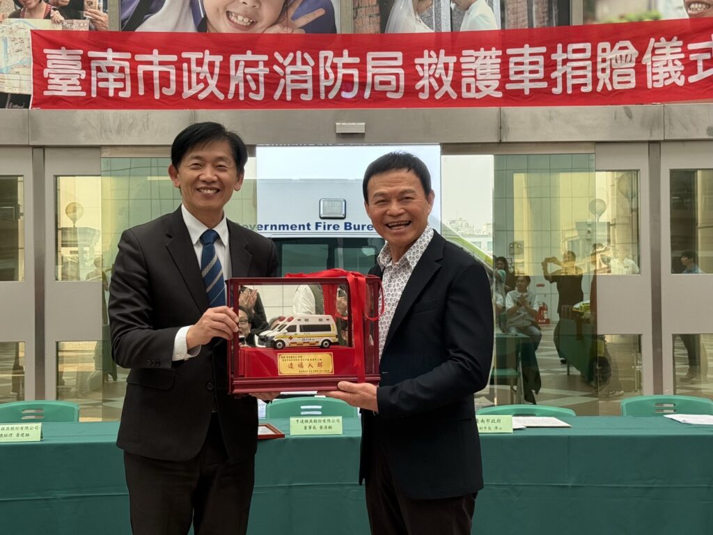 為提升大臺南地區的到院前緊急救護品質,在地優質企業「亨達模具股份有限公司」熱心公益,慷慨捐贈價值新台幣450萬元的高階救護車一部。捐贈儀式於20日在臺南市政府2樓隆重舉行,由副市長葉澤山代表受贈,亨達模具董事長黃清樹、總經理黃建融及王惠貞女士皆親自出席。該部救護車未來將配置於市府消防局新化分隊,為守護市民生命安全再添一大利器。