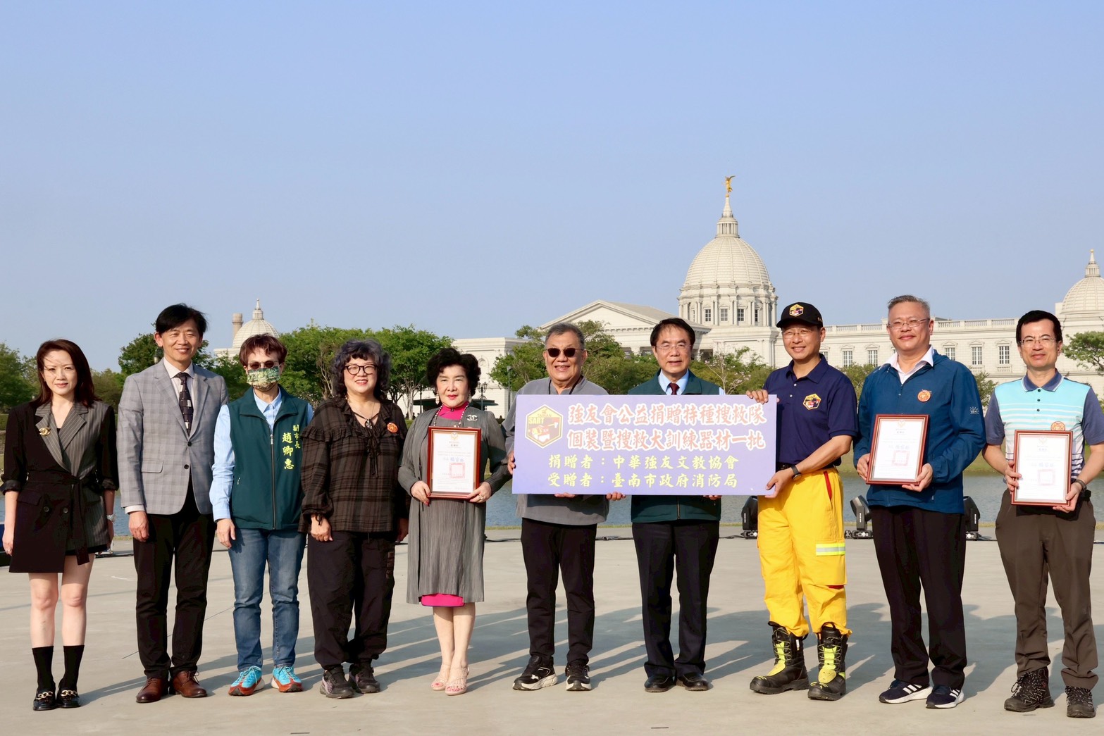 本次強友會捐贈消防器材予台南市政府消防局,包含搜救犬訓練設備及消防人員個人防護裝備,協助提升第一線救災與搜救能量。今日活動開幕儀式中,由市長黃偉哲代表市府頒贈感謝狀予強友會代表,感謝其長期投入公共安全與社會公益,展現民間力量對城市安全的重要支持。