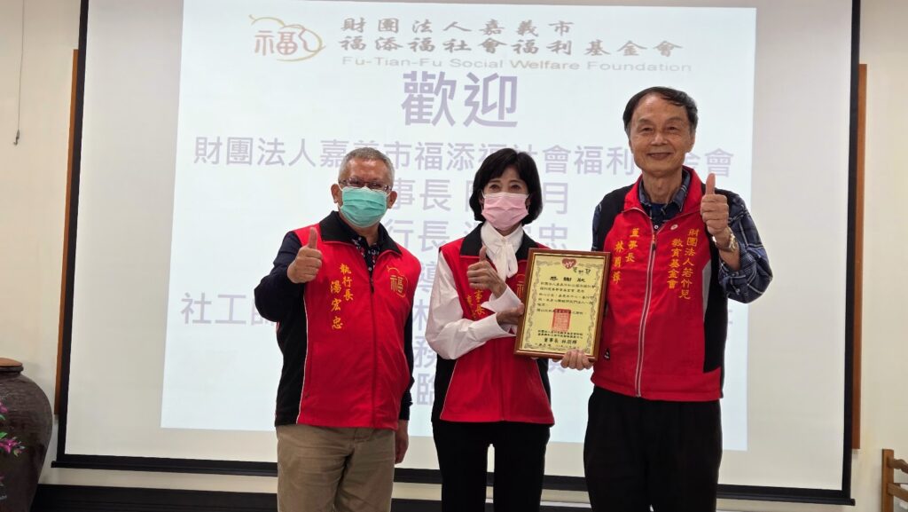 在社會的每一個角落,都有需要被看見與陪伴的生命。長期致力於保障弱勢族群基本生活安全與福祉,並推動各項社會福利與慈善服務的「財團法人嘉義市私立福添福社會福利慈善事業基金會」,於115年3月24日由董事長-陳素月女士偕同執行長-湯宏忠、督導-黃已茿、社工師及總務等同仁,特地親自前來關懷若竹兒這群「大孩子」,並捐助社福金,由財團法人若竹兒教育基金會 董事長-林朋輝致贈感謝狀。