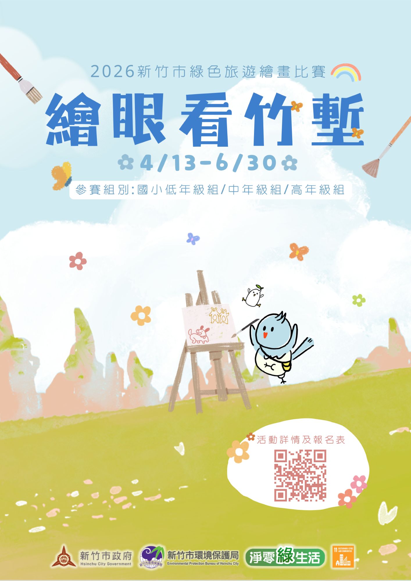 新竹市政府致力推動淨零綠生活,及落實環境部推廣的「綠色旅遊」並扎根環境教育,將從4月13日起至6月30日止,舉辦《繪眼看竹塹:2026 新竹市綠色旅遊繪畫比賽》活動。邀請就讀新竹市的國小學生參與,祭出總計超過180萬點環保綠點及環境教育旅遊行程等豐富獎項,鼓勵學子透過畫筆勾勒城市美景,藉此引導民眾共同重視環保與推廣低碳生活,落實聯合國永續發展目標SDG11永續城市。