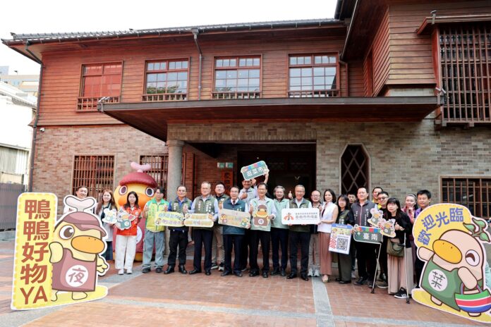 臺南市超人氣吉祥物「菜奇鴨」與「夜奇鴨」進駐充滿歷史氣息的古蹟「愛國婦人會館」,展開一場跨界合作!臺南市長黃偉哲27日下午親自到場開箱杯袋、抱枕與頸枕等多款療癒系文創周邊,歡慶「鴨鴨入厝」,並推出全館滿千抽萌鴨活動,引發粉絲高度期待。